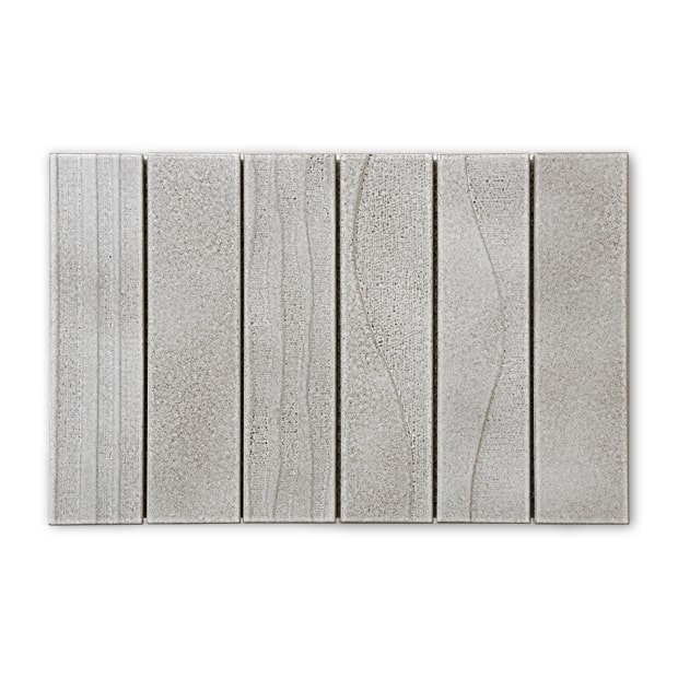 釉薬のピンとした緊張感とラフ面の温かさを同時に感じるタイル。単品での使用だけでなく、同色のレリーフタイルのベースとしてお使いいただく事もでき、洗面台やキッチンなど日常空間に華やぎをプラスします。