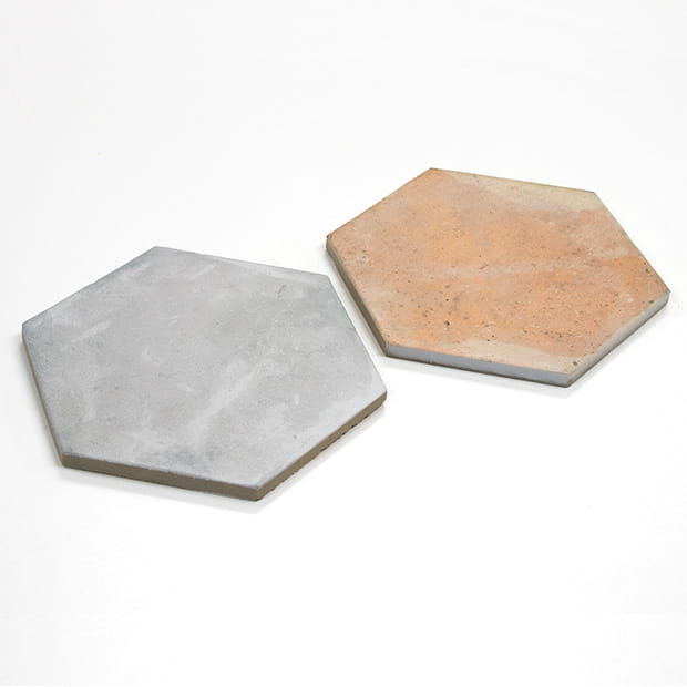 セメント風のプリントを施したスペイン産の六角形タイルです。素材の風合いを再現し、室内を優しい雰囲気に仕上げます。