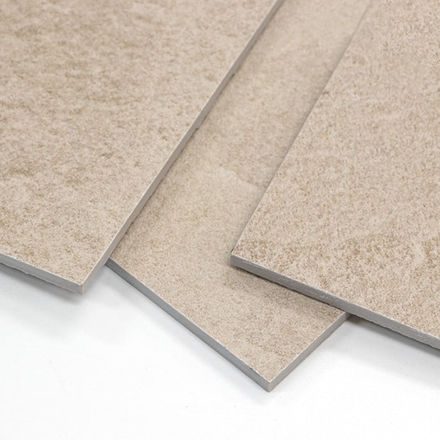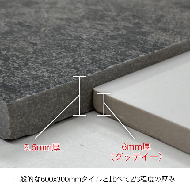 厚さ6mmで内装壁にも施工しやすい600x300角タイル。力強い石材風の模様で住宅内に象徴的なスポットを作ることができます。