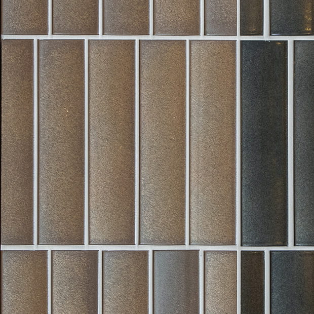 僅かに凹みのカーブがつけられたタイルの面状に、空気に溶けこむようなセミマットな質感の釉薬が施され、ほのかに温かみを感じる空間に。ナチュラル系インテリアや質感重視のインダストリアルな空間デザインを支えます。