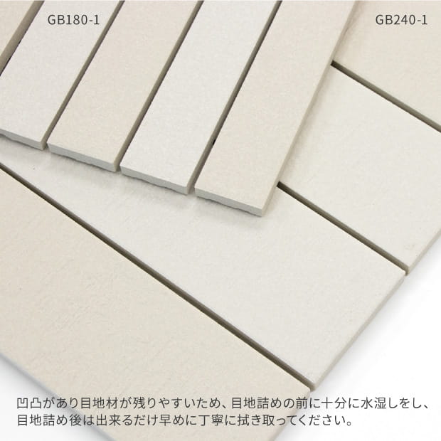 ●目地材が残りやすいため、目地詰めの前に十分に水湿しをし、目地詰め後はできるだけ早めに丁寧に拭き取ってください。