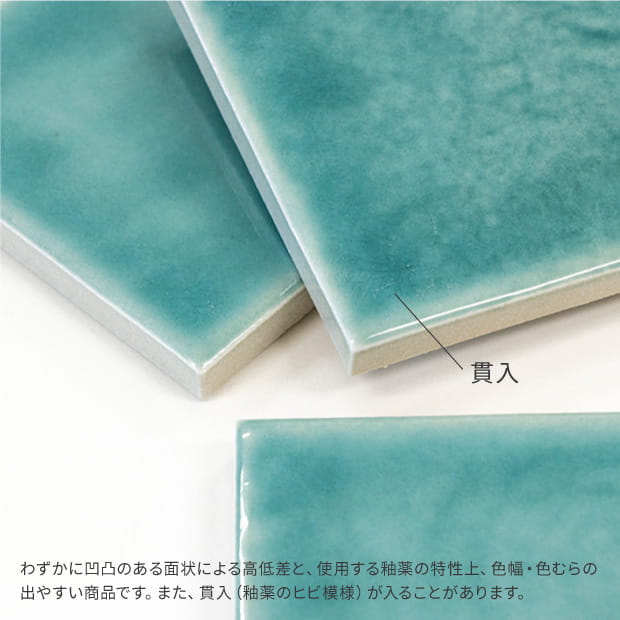 ■自然な色むらと色幅があります。■表面にわずかな凹凸をつけたタイルです。自然な歪みがみられますが、風合いを演出するための仕様です。