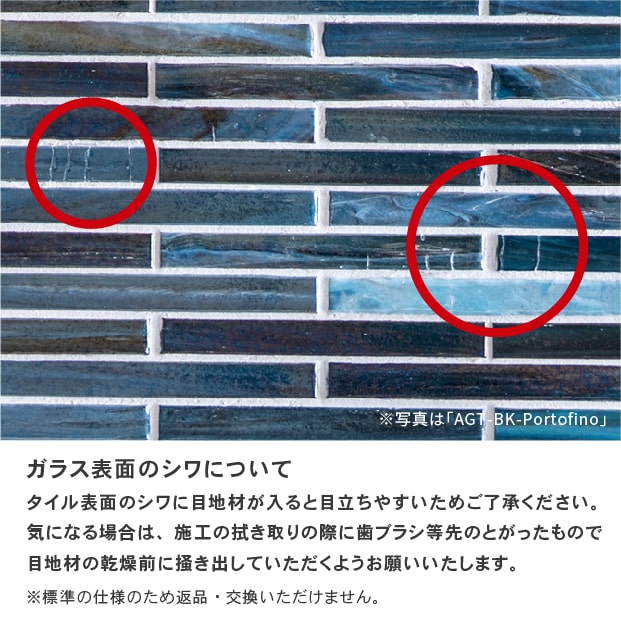 ■ページ下部の「ガラスタイルに関する注意点」を必ずご確認ください。■自然な色むらと色幅があります。