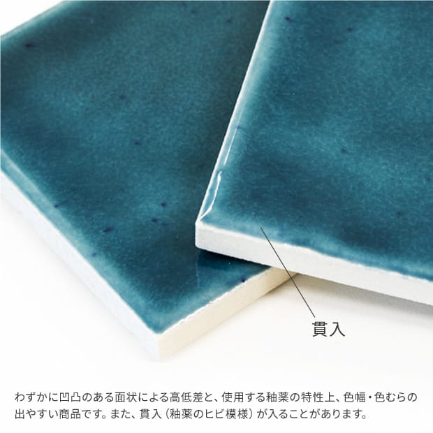 ■自然な色むらと色幅があります。■表面にわずかな凹凸をつけたタイルです。自然な歪みがみられますが、風合いを演出するための仕様です。