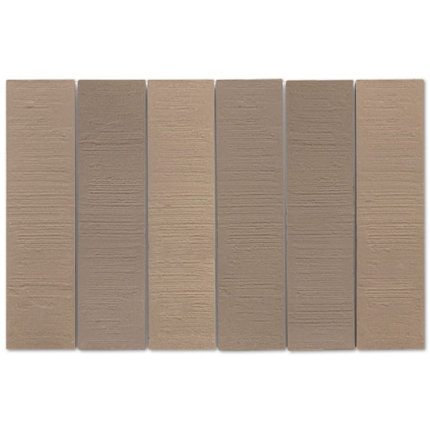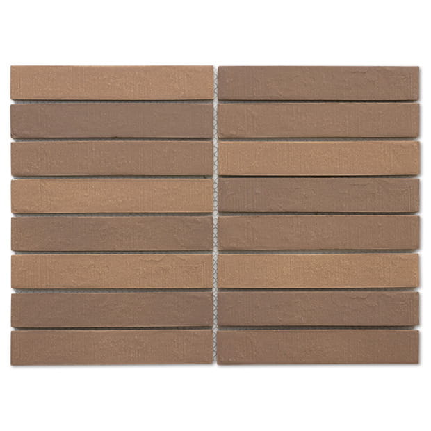 土の温かみをそのまま閉じ込めたようなボーダータイル。クラフトっぽい質感と、アースカラーの繊細な色幅で、空間全体のイメージを方向付けます。リビングやエントランスホールなどの意匠におすすめ。