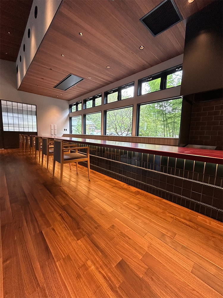 レストランのカウンター腰部分に「プラハ」をミックス貼りで施工していただいた事例です。
